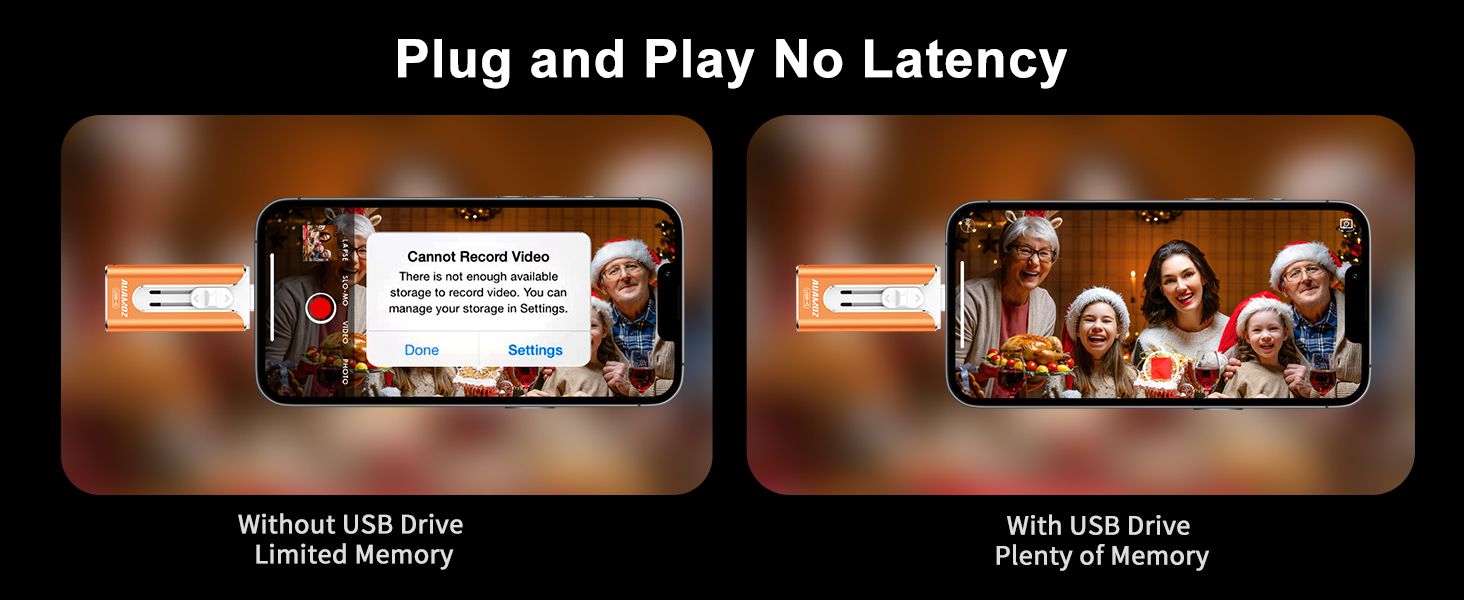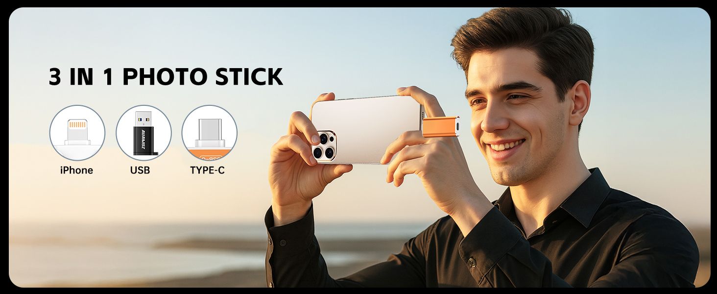 Compatible with iPhone 17 to 11, iPad, Android devices and PCs, easily stores photos, videos and files.