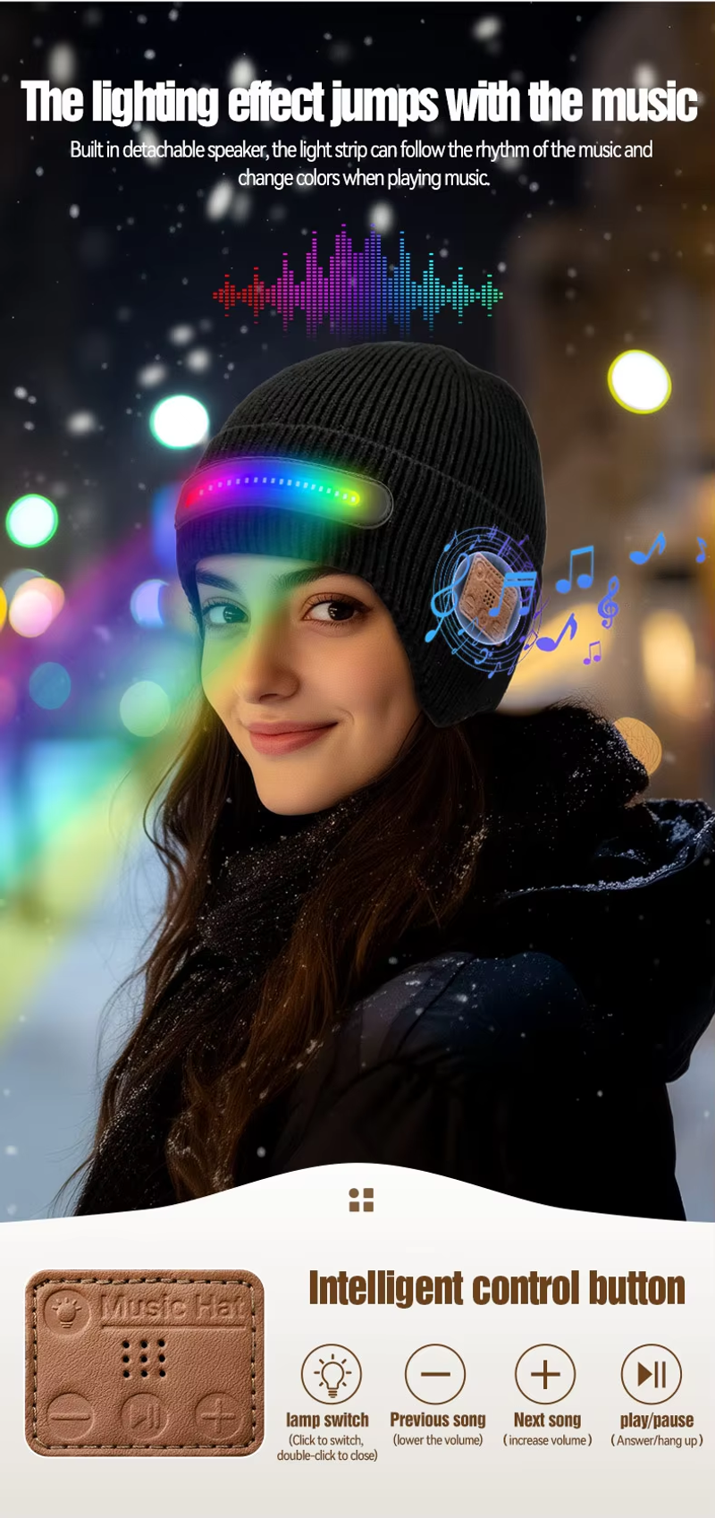 Bluetooth Music Light-Up Hat (Removable and Washable)