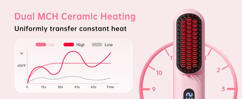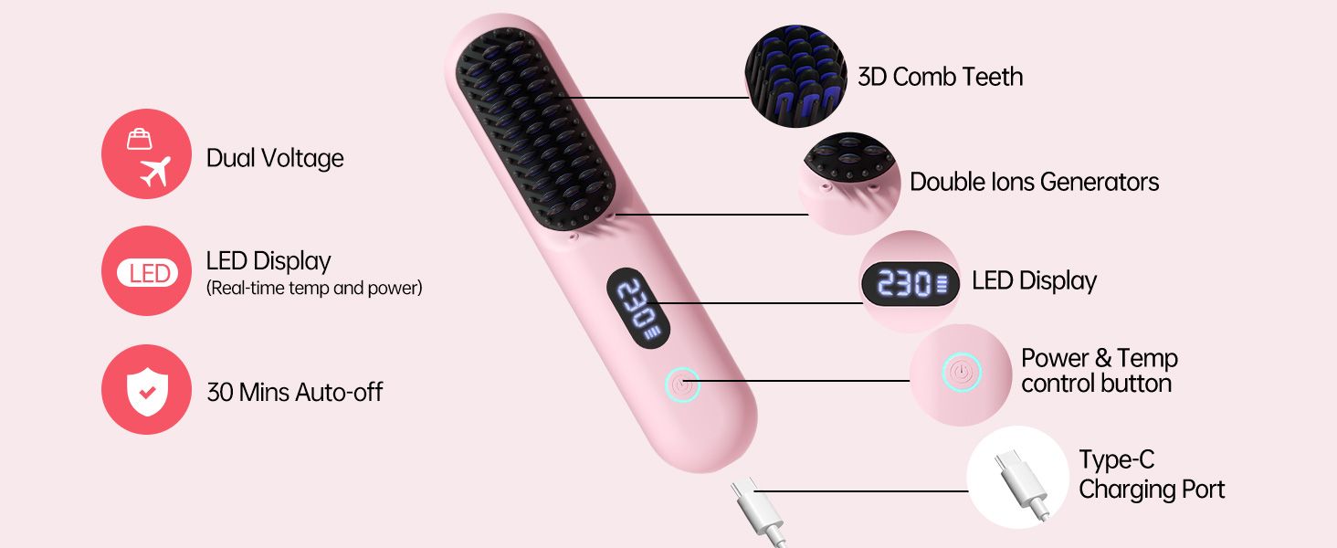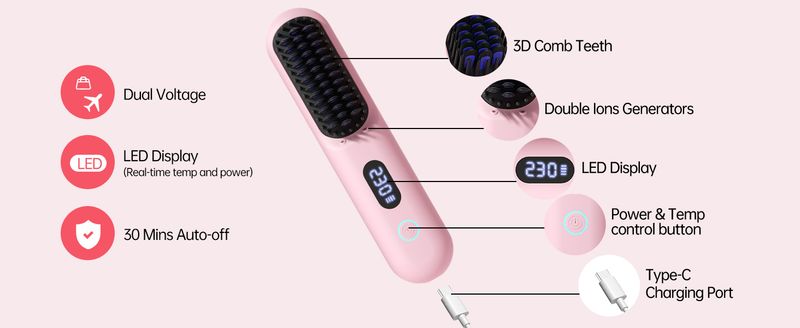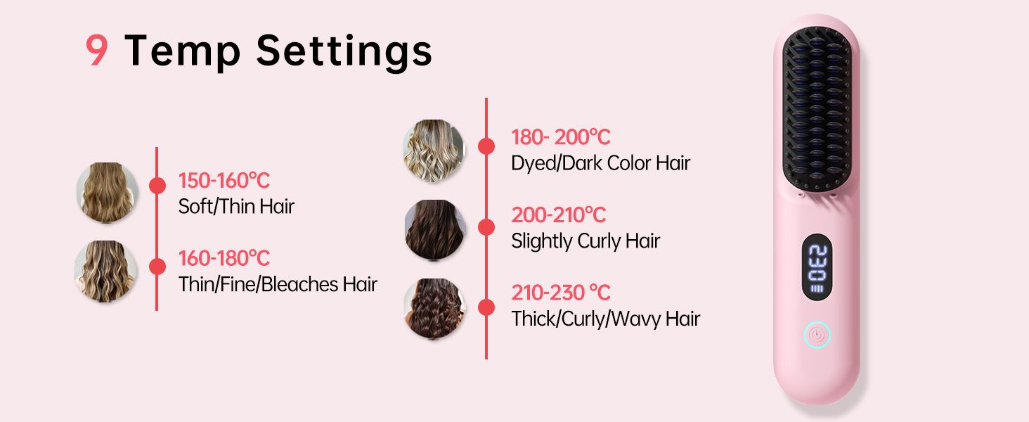 9 temperature settings, mini travel hair straightener brush, suitable for both travel and home use