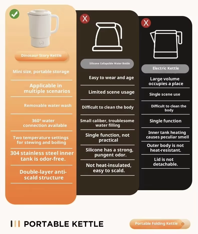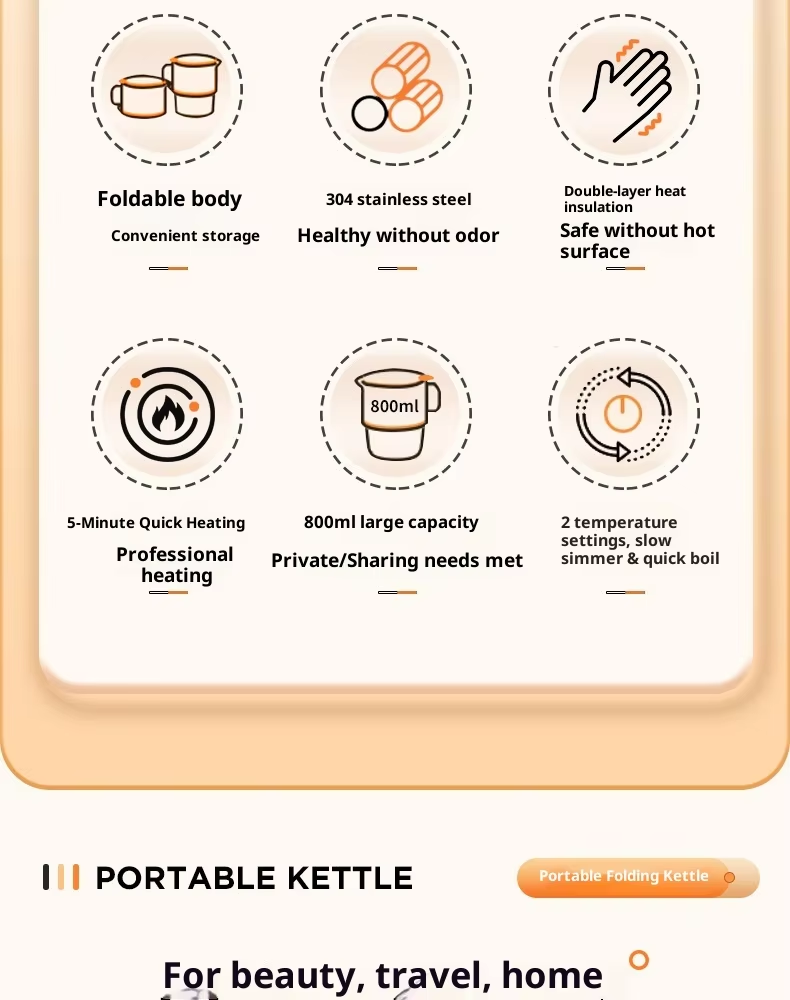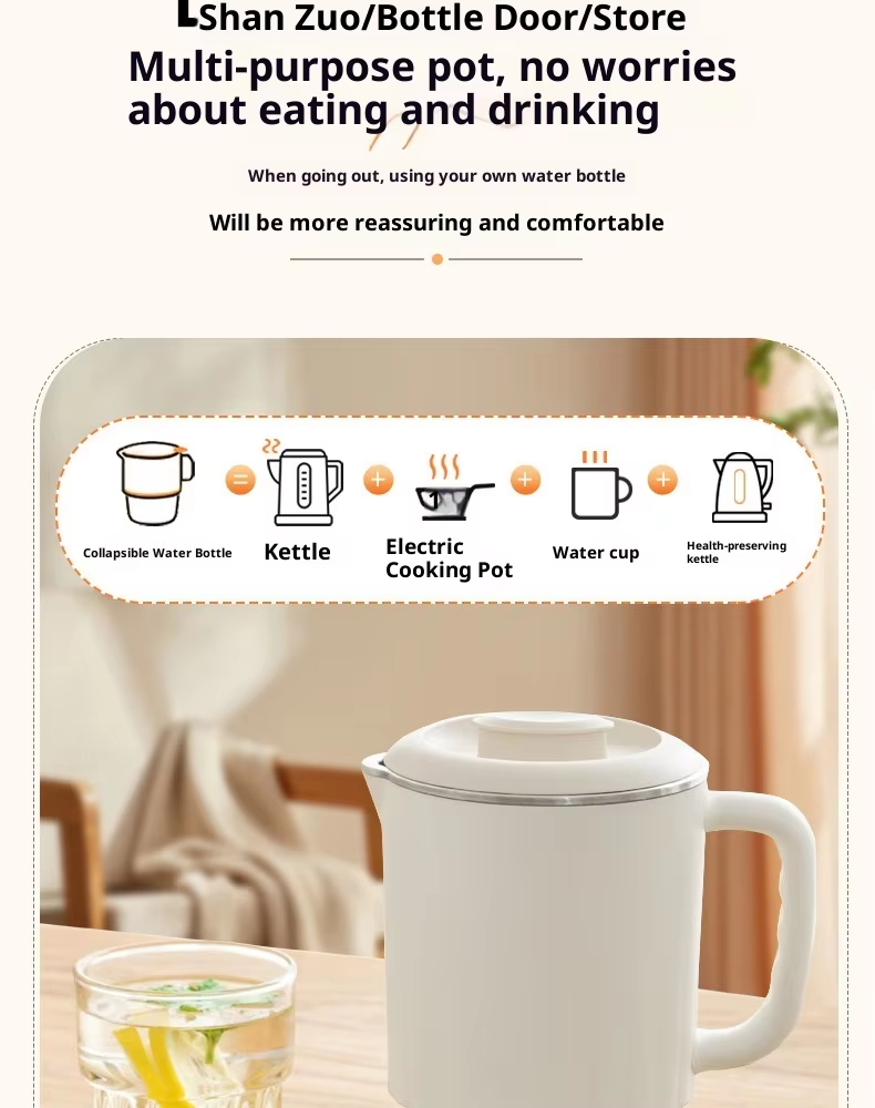 High-quality portable stainless steel electric kettle, 800ml, with automatic shut-off and dry-boil protection
