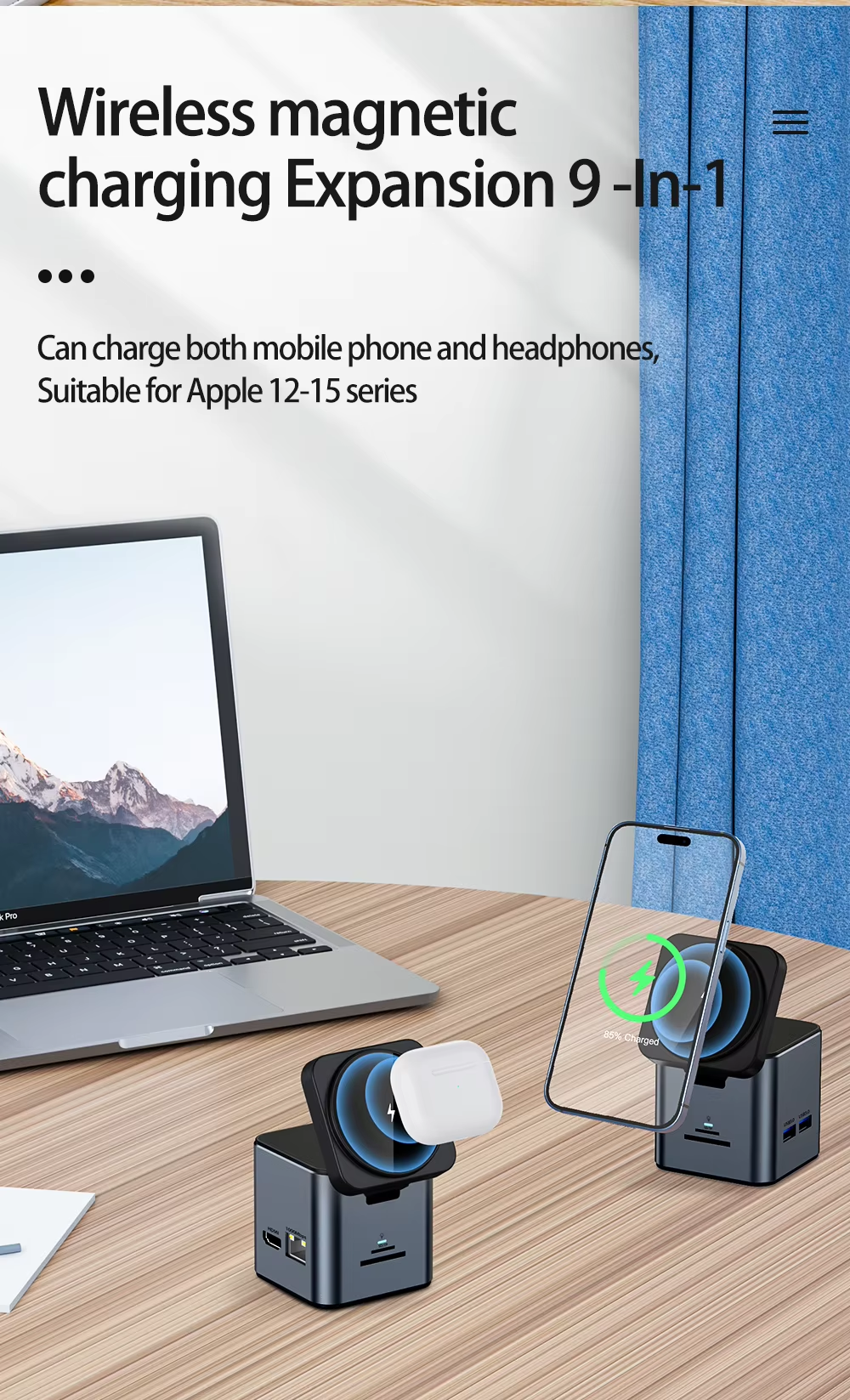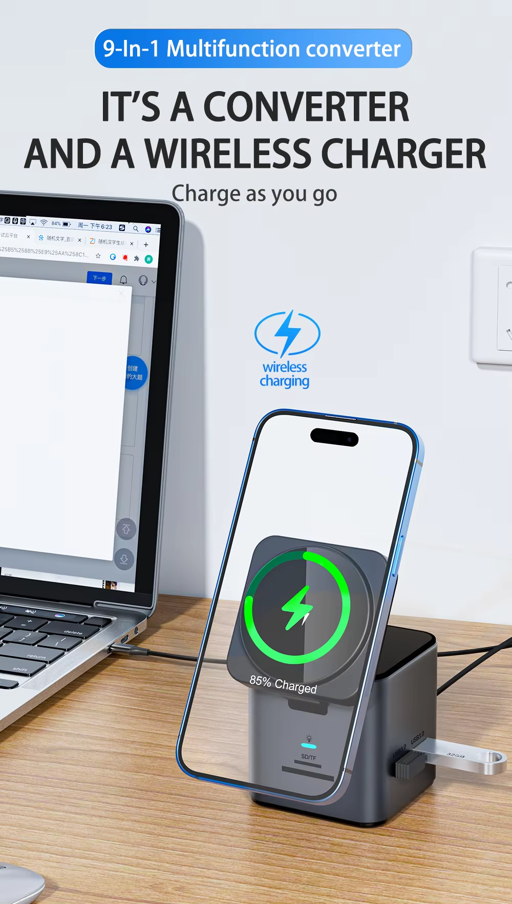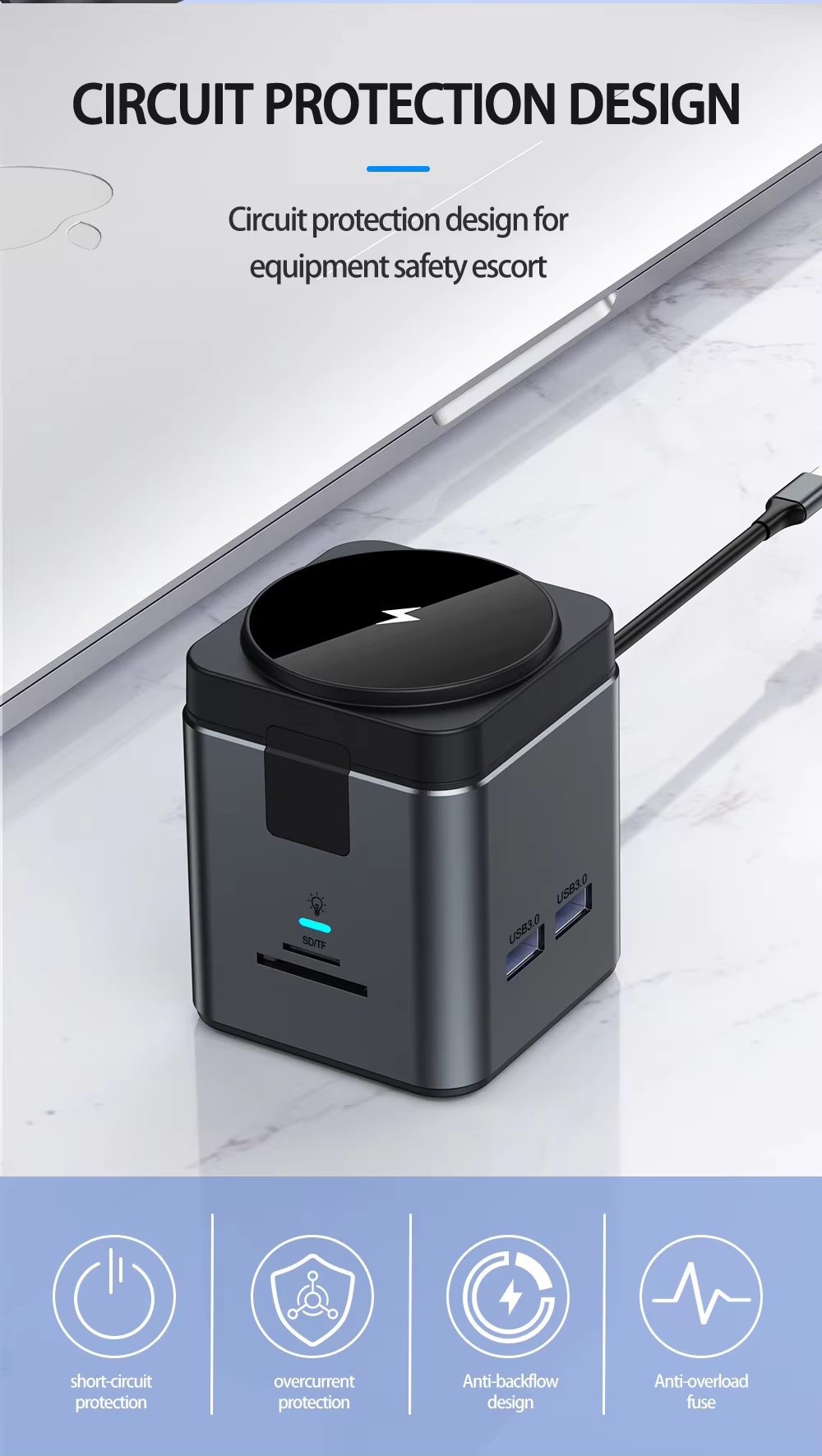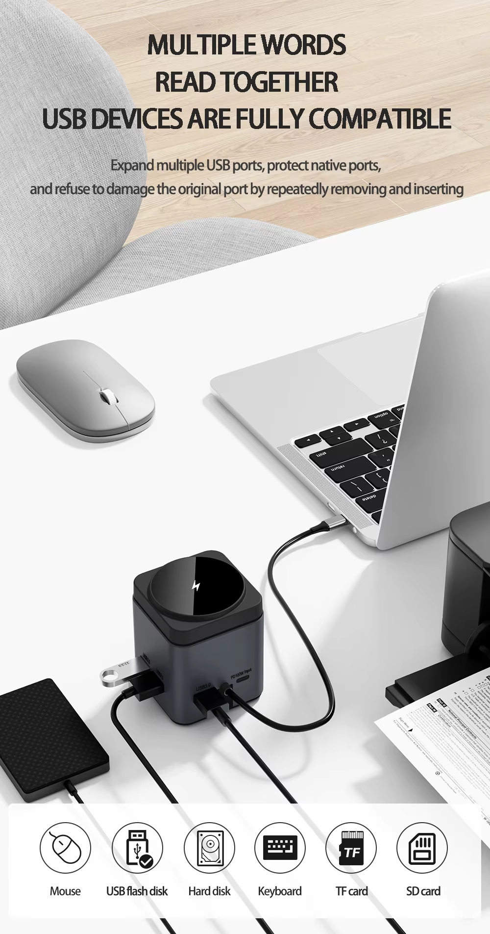 Multi-function adapter hub: high-power fast charger for mobile phones and computers