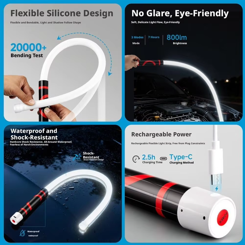 Portable rechargeable LED light bar, flexible inspection work light, suitable for car repairs