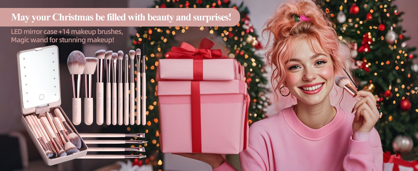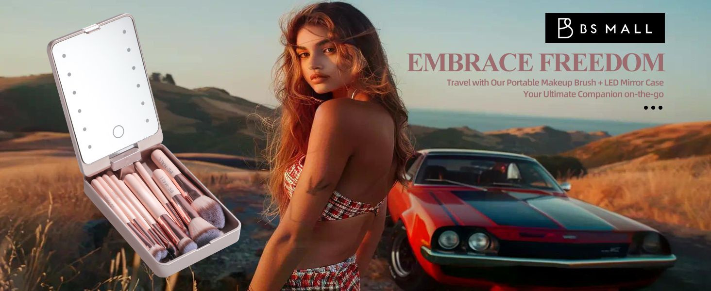 LED Mirror and 14-Piece Mini Makeup Brush Set