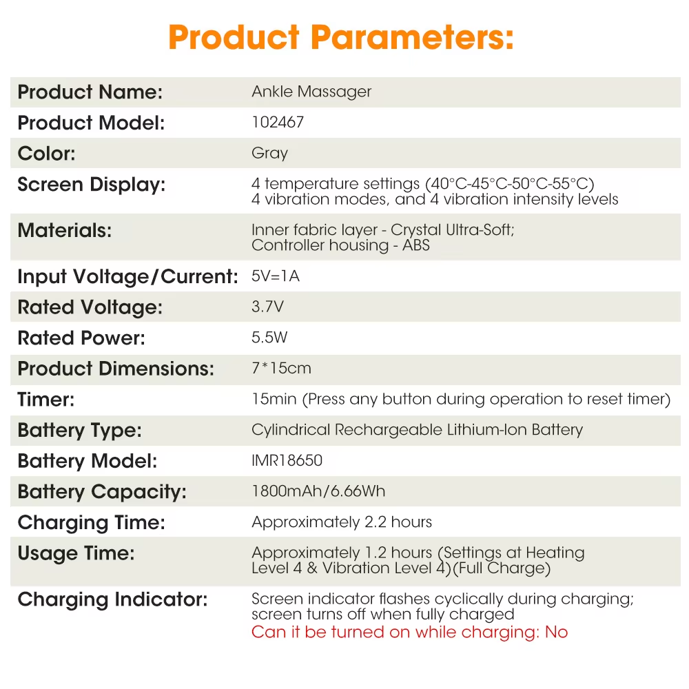 Rechargeable Heat and Vibration Ankle Massager