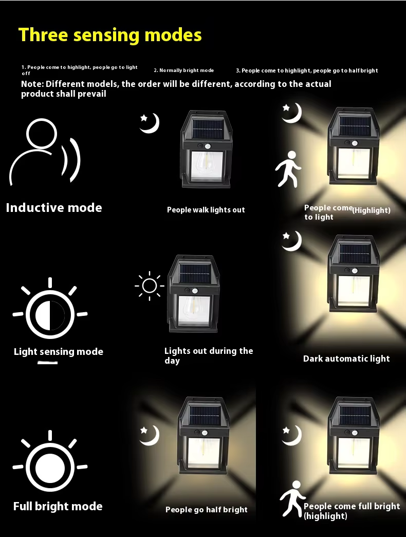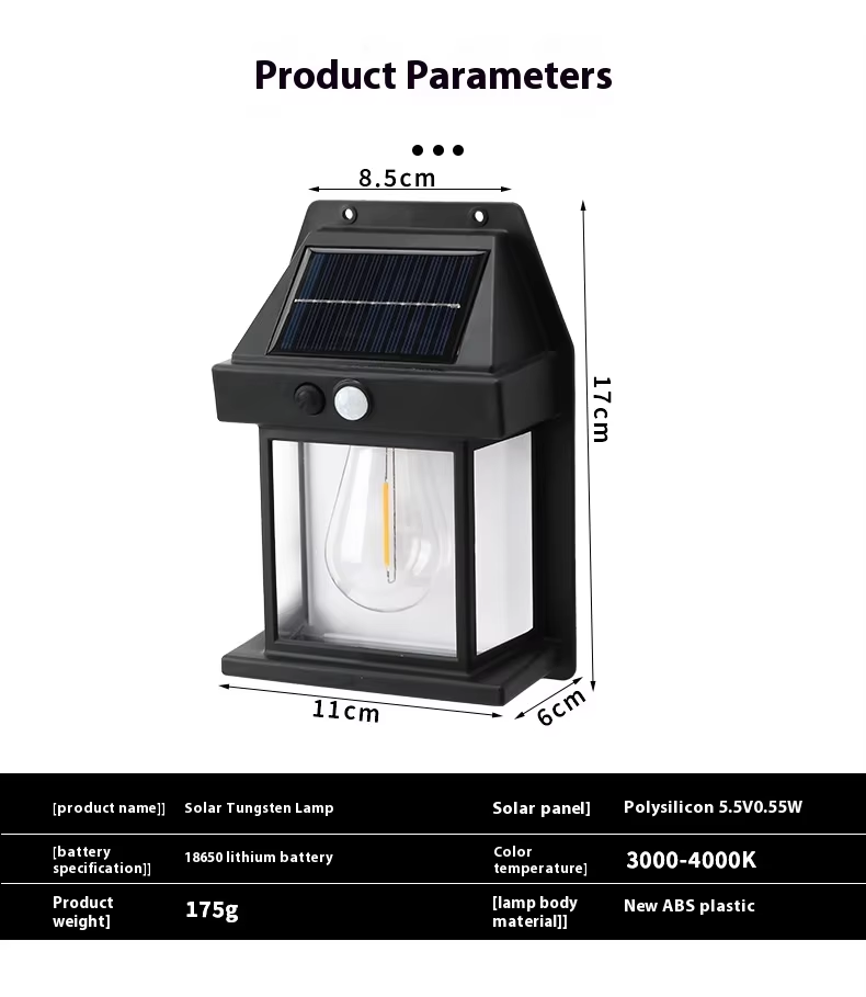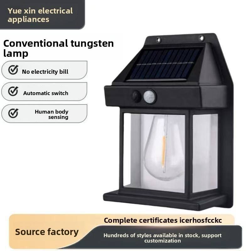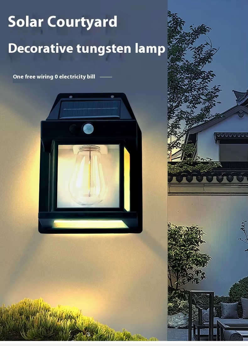 Solar-powered tungsten filament wall lights, suitable for gardens, courtyards, paths and outdoor areas